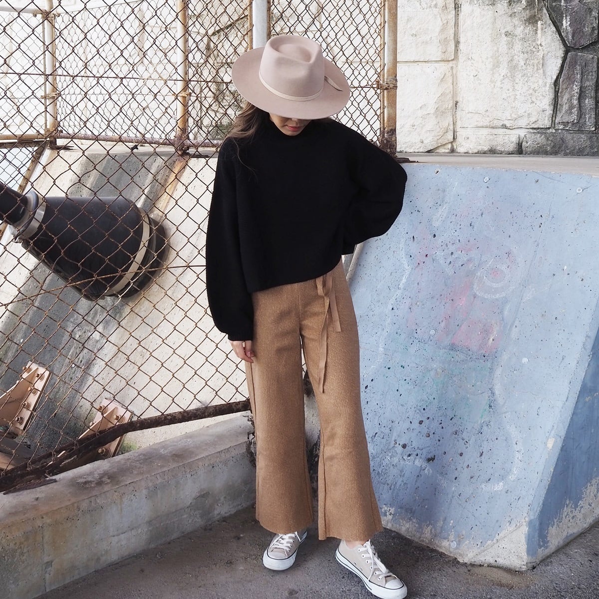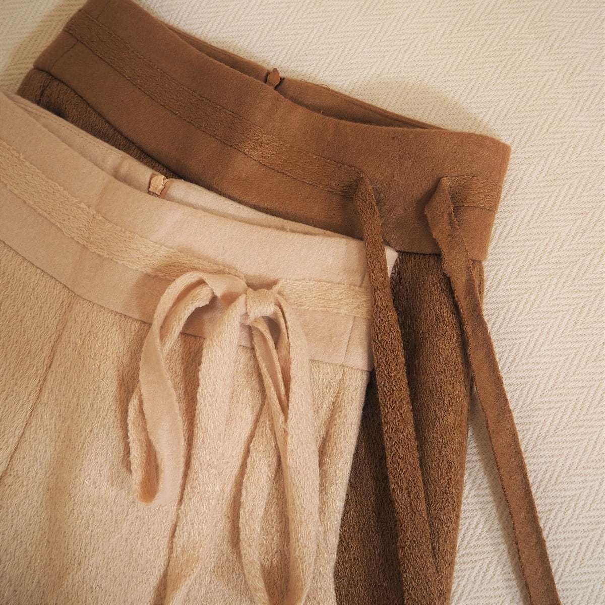もこもこ素材を使ったナチュラルな風合いのワイドパンツ。