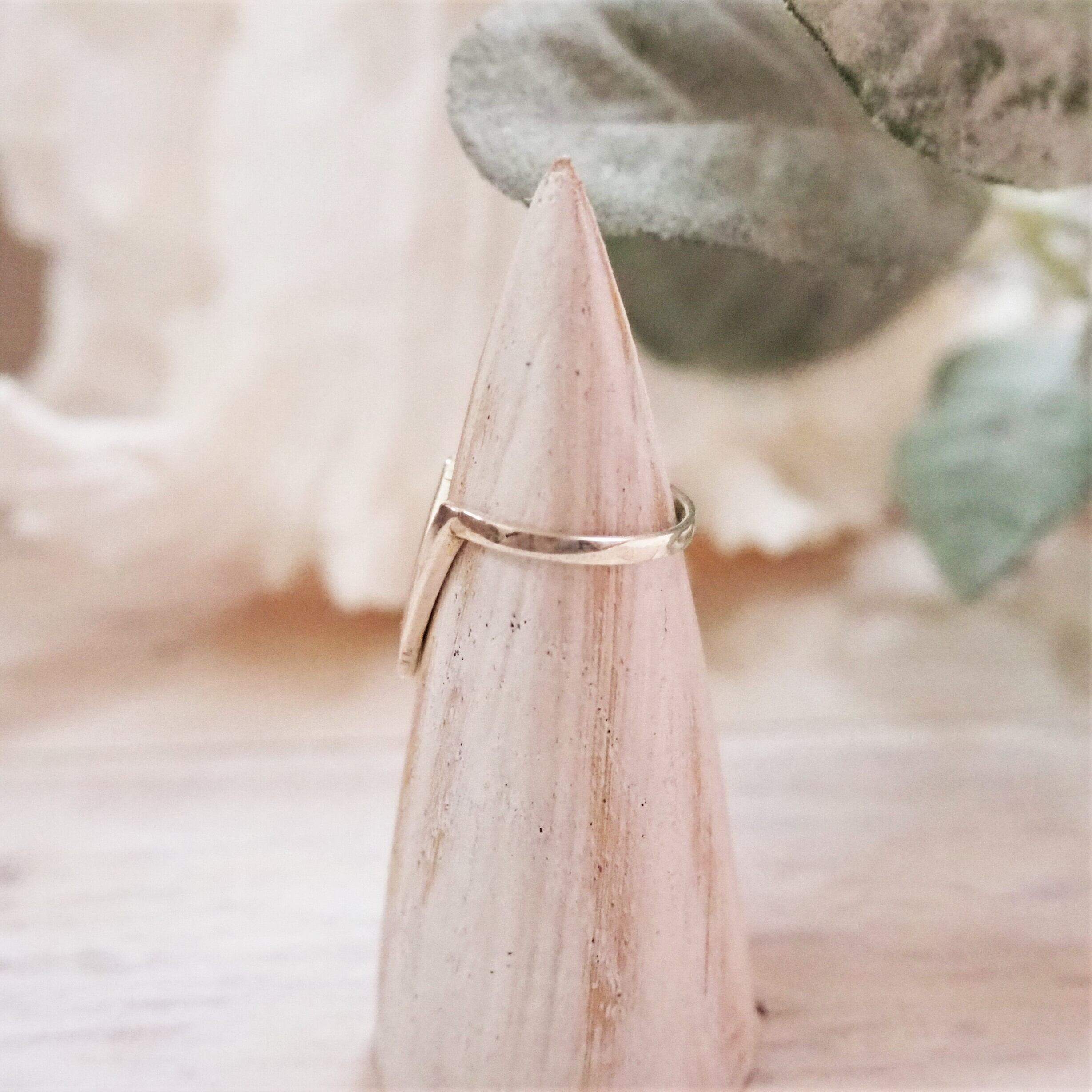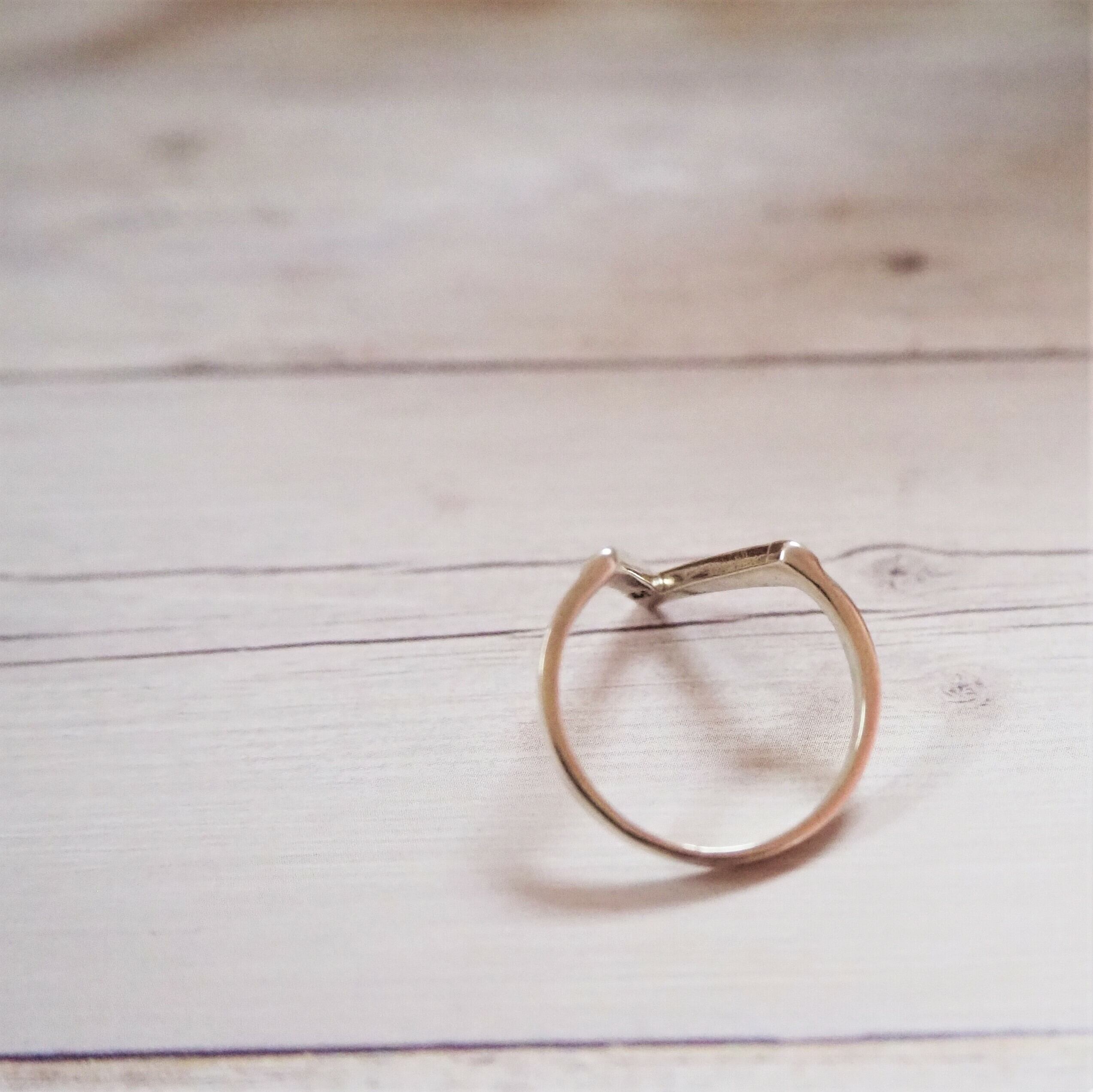 シンプルなデザインながらも存在感のあるV字リング。