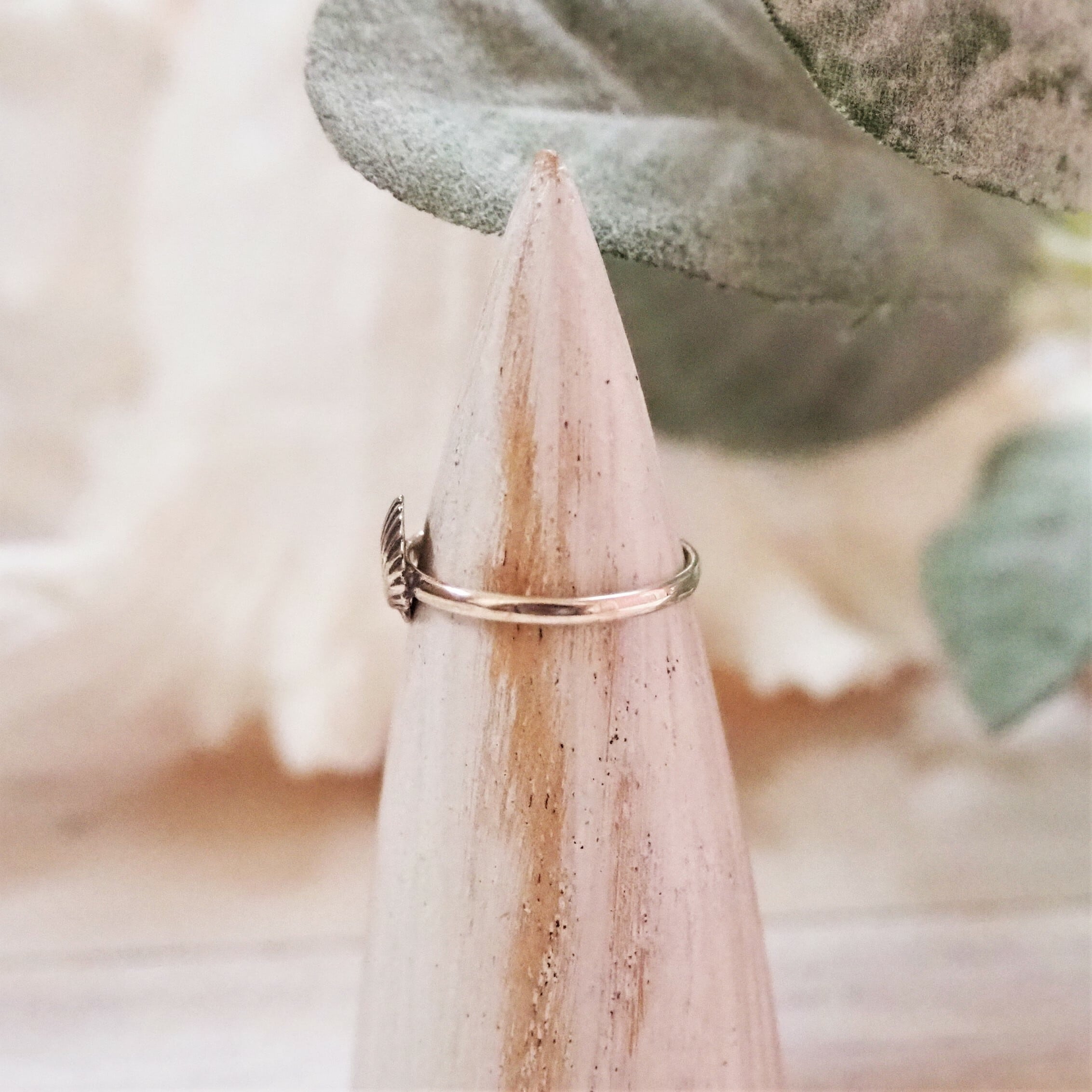 貝殻モチーフがついたシンプルなリングです。