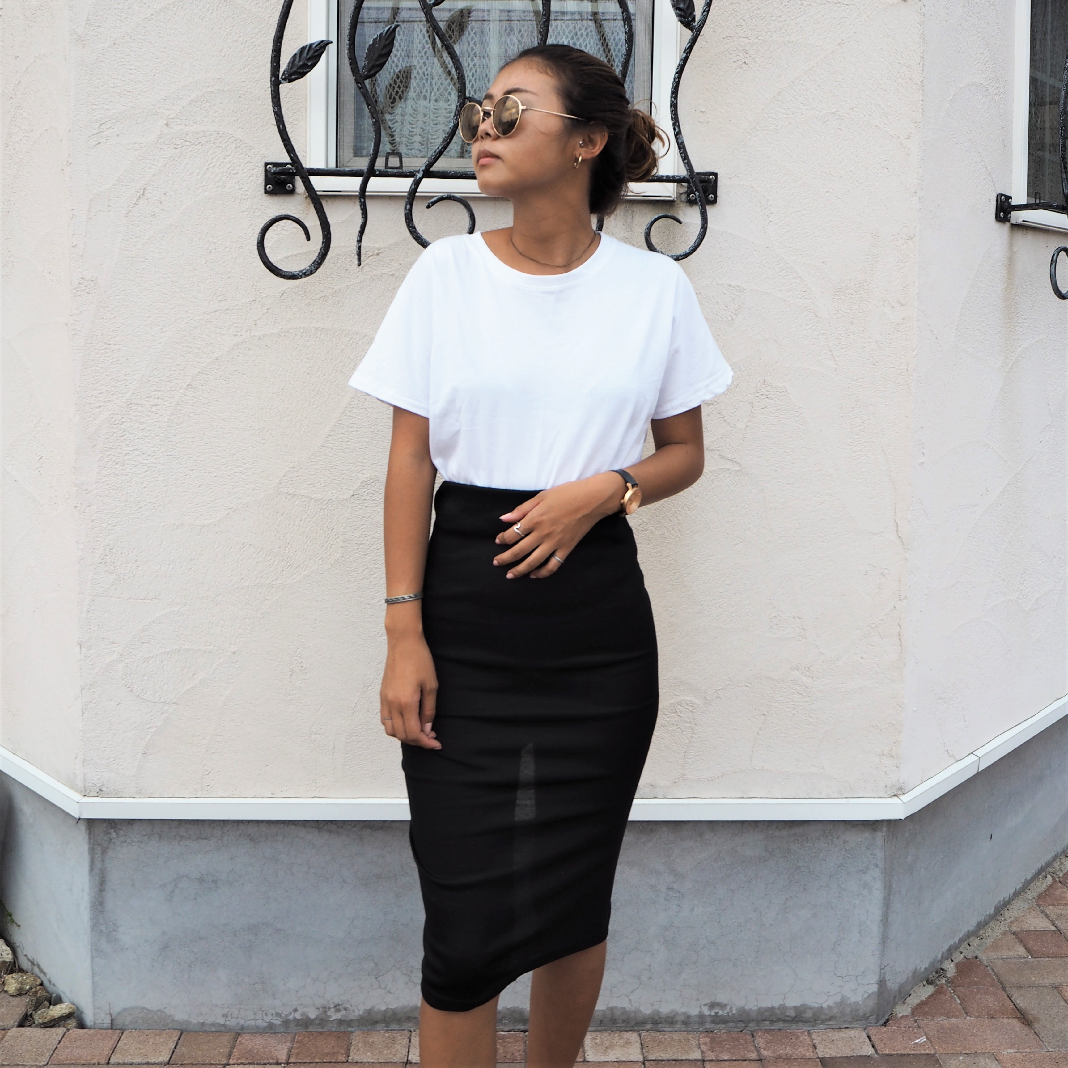 ルーズなニットトップスと合わせたり、結婚式などのパーティーシーンにも合わせやすいので使いやすいアイテムです◎